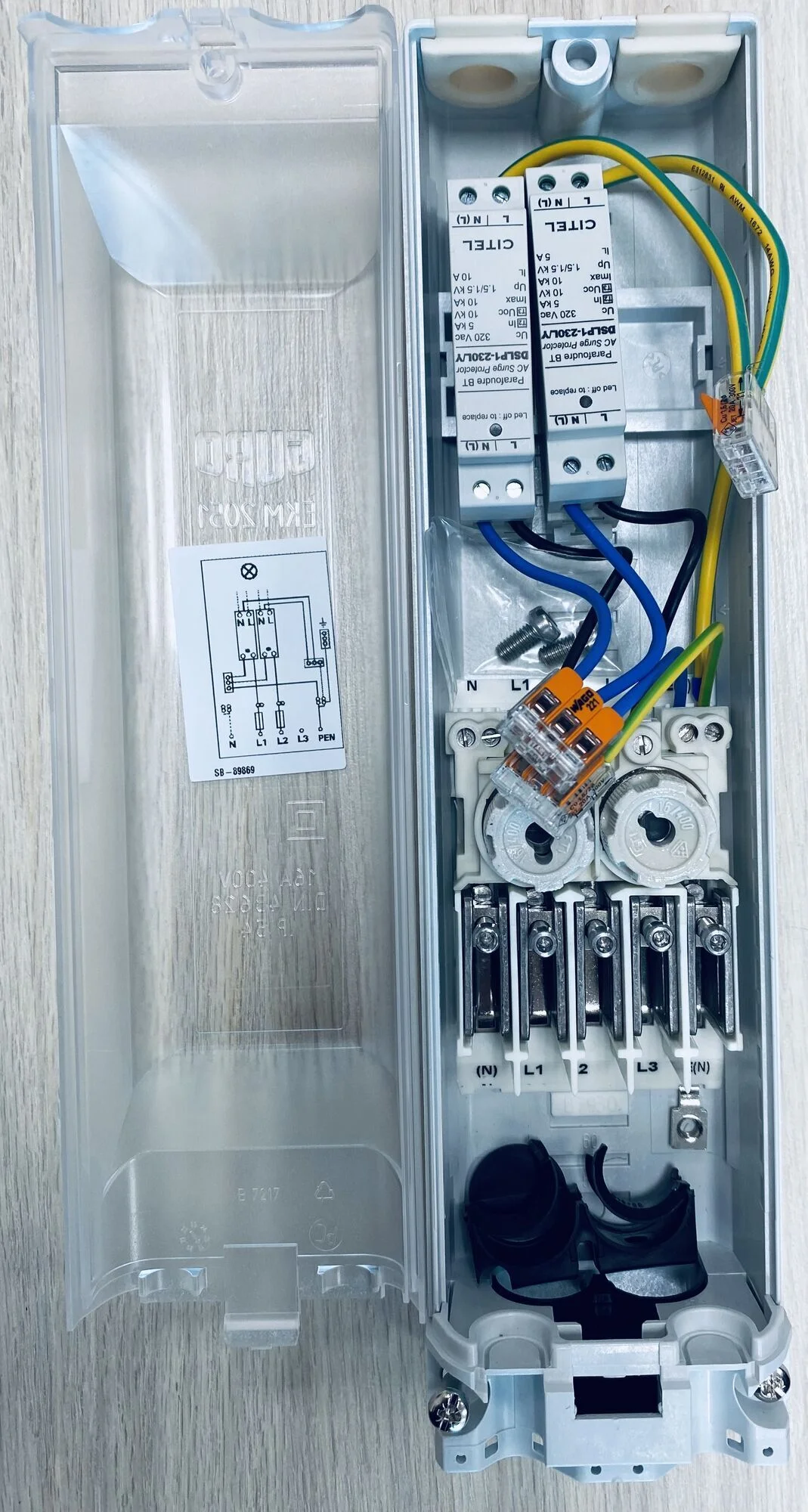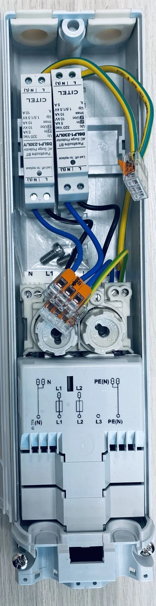 - Держатель предохранителя: 2/3хЕ14 / разводка / колпачки / DIN-рейка